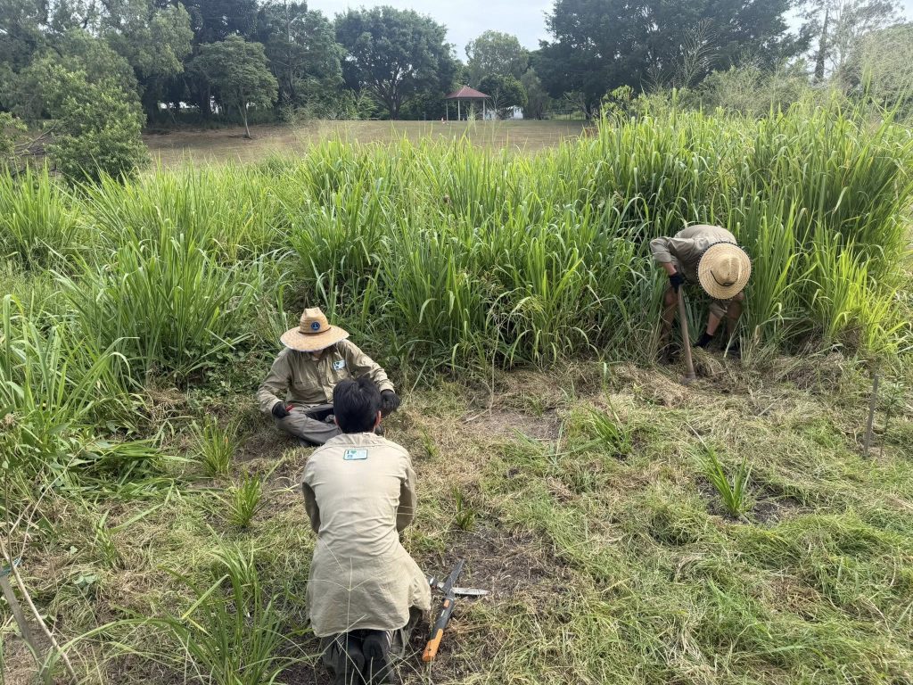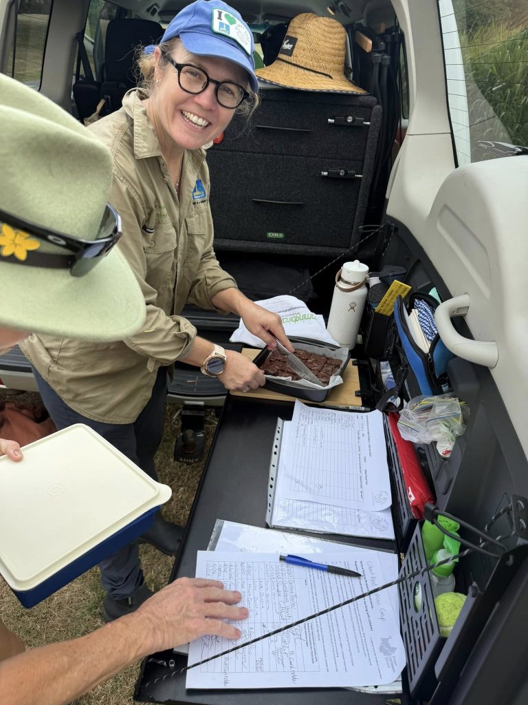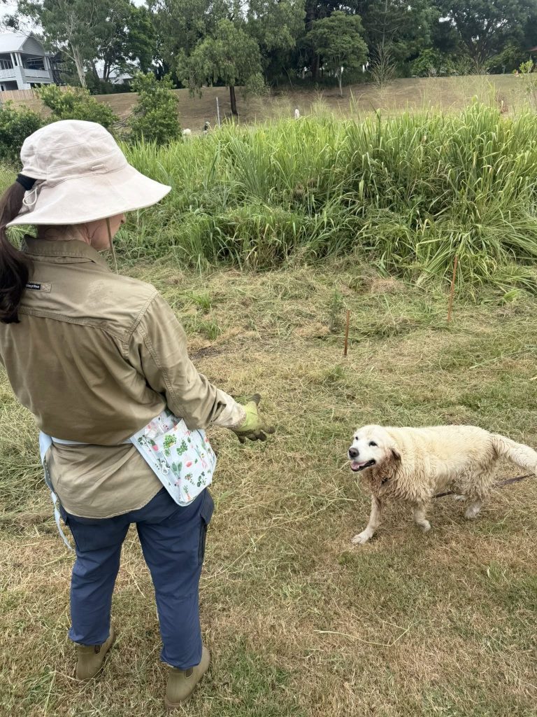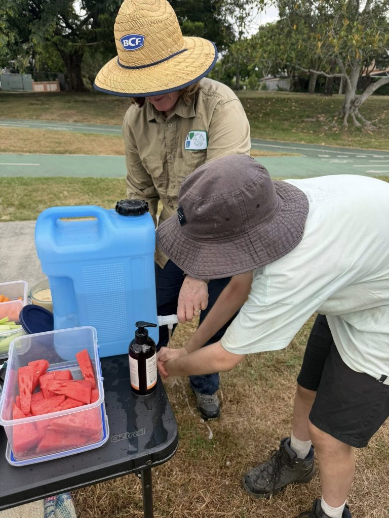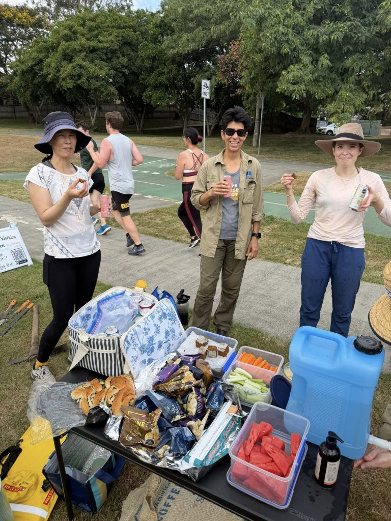 After a humid but productive few hours of weeding, dedicated volunteers gathered to enjoy some delicious treats and reflect on their progress. The group was delighted to see how well their planted natives are thriving, clear evidence of positive impact their regular efforts are having on this section of Kedron Brook.