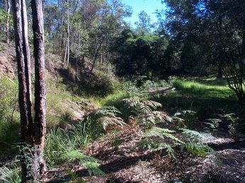 This restful scene is part of the area managed by the Wahminda Grove Bushcare Group in the upper reaches of the brook. After the removal of weeds, regeneration of native ferns is visible in the foreground.