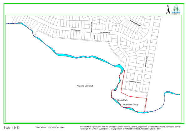 In early 2007, Brook Park Bushcare Group received a $5000 Community Assistance Scheme grant to support its bid to enhance the Kedron Brook Waterway. Personally supported by Councillor Battersby, the grant money was allocated under the environmental category of Pine Rivers Shire Council’s Community Assistance Scheme in 2007. This timely support enabled us to clear a large section of weeds along the banks of the Kedron Brook and to re-establish a buffer of native vegetation.