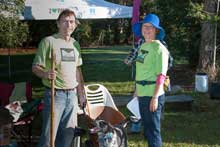 Some volunteers bring their leashed dogs along both for exercise and company (20 July 2014) |