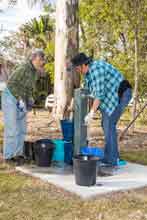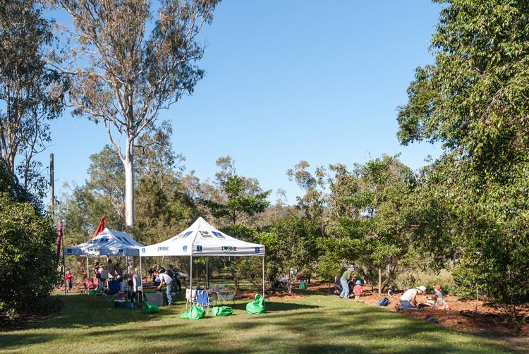 Warm but comfortable sunshine greatly enhanced the working conditions at the revegetation project launch conducted at Camoola Street Park, Keperra, on Saturday morning, 13 July 2013. This planting activity was strongly supported by Brisbane City Council represented by Fluer Sanderson from Habitat Brisbane and A/Creek Catchment Officer Jacinta Hamilton. A well-organised group of executive members and general volunteers from Men of the Trees were very supportive of this local community activity and brought much valued planting equipment. Part of the KBCB project funding was used this day mainly to cover the purchase of the plants, preparation of mulched gardens, cost of watering, a mobile toileting facility and hire of BCC support staff at this function.