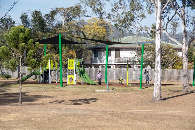 Camoola Street Park has a number of tall mature trees (20 July 2014) |