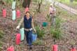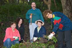 | Mick Wilson and his three children (right) work amongst the volunteers on the steep slope in this revegetation activity. (28 October 2010) |