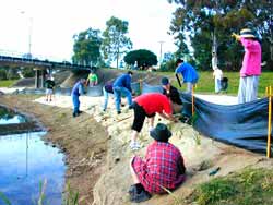Planting activitiesThe group meets on the third Saturday of each month. Planting times are usually from 8.00 to 10.00 am. Tools, gloves and plants are supplied. Bring along a hat, sunscreen and water bottle. Our activities are carried out along the Brook between the two locations roughly specified by the following map references, UBD Ref. Map 139 N10 - Map 140 B7. Signs along the Brook indicate the actual time and location of the next planting. If you live locally keep an eye out for flyers, contact Mark Lacy on 0418 616 824, or join the groups email distribution list by contacting Donald Hopkins by Photographs taken before 2005 were supplied by Donald Hopkins. |