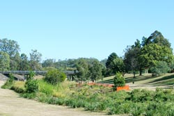 Planting of local native trees shrubs, grasses and Lomandra sp. was undertaken with the assistance and support of Men of the Trees. The initial planting was in October 2001 with a follow-up planting in April 2002. The fourth stage of the Damon Street project involved planting another section of the bank. Brisbane City Council cleared tall grasses and shrubby weeds. The initial planting for this site was also undertaken with the assistance of Men of the Trees in April 2002. Several hundred trees, shrubs, grasses and herbs have been planted at the Damon Street Site. Plant survival has been good and the exposed site is slowly developing a vegetation cover. We are currently working on the fifth and final stage of the Damon Road project, up to and below the last of recently completed dwellings. The weather, both drought and flooding, has slowed progress. An initial clearing and planting was undertaken in May 2009. Supplementary and understorey plantings will be added to the planting during 2011.