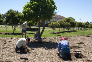 Melrose Creek Bushcare Group has enjoyed strong neighborhood support. Numbers may be small at a planting activity unless there has been a special campaign in conjunction with BCC support. In fact, the compact nature of the parkland means that a small group can generally handle the overall tasks in suitably sized 'bits'. Each new revegetation activity is usually started by preparation of a small area of heavy mulch. This is then followed by the hole-digging and planting with carefully selected plants that combine tall trees with a suitable understory of native shrubs.