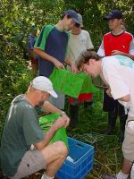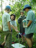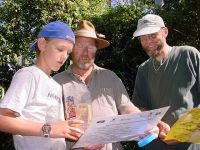 bait. Michael, Daniel, James and Chris watch John set the trap.
