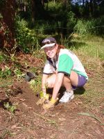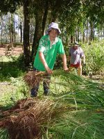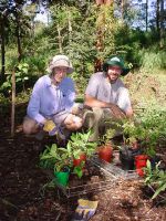 Revegetation ActivityIf we didn't carry out this revegetation work, we wouldn't be able to enjoy the bushland setting of our aquatic environment. Vegetation is particularly important along the banks of our streams because this helps to support biodiversity of the fish populations as well as reducing soil erosion of the banks. While our Fish Snapshot team sampled, analysed, measured, trawled and netted, and counted and identified our fish life, our other team toiled to provide a bushland setting for our stream. This was done through hand removal of Guinea grass clumps, vines and weed, followed by further tilling, weeding, digging and restricted planting with plants selected from natural forest flora.