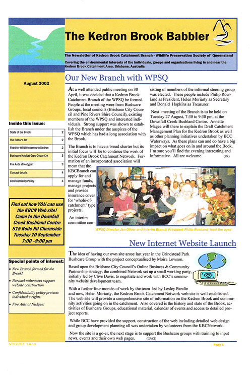 - the Kedron Brook Babbler (February 2007 - December 2012),
