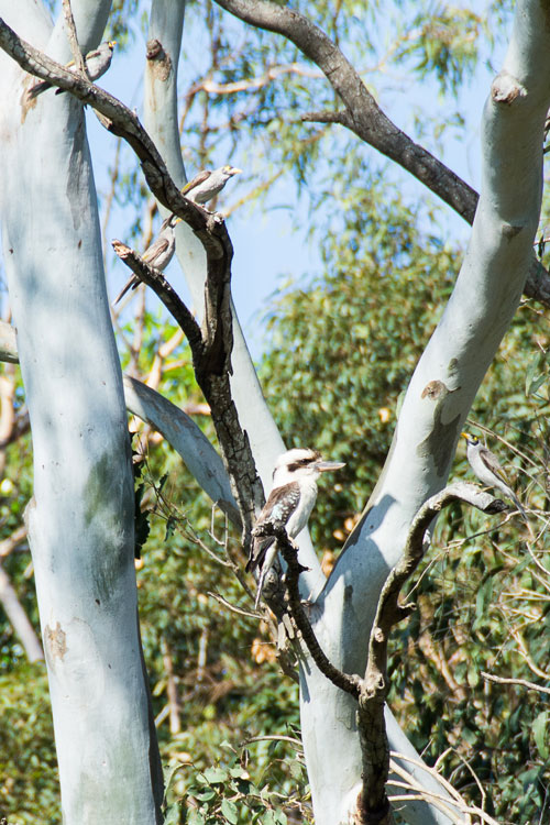 Laughing Kookaburra receives an onslaught from four Noisy Minors seen during a recent bird survey