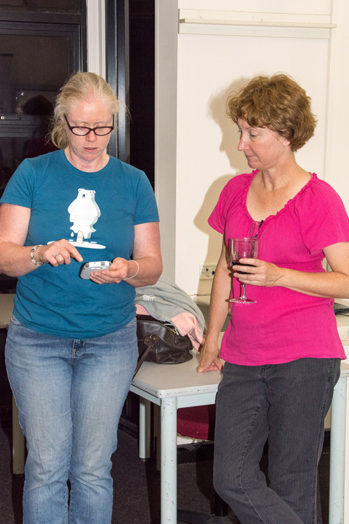 Melissa Burrows discusses a point with another member before the October KBCB Meeting (15 October 2013) |