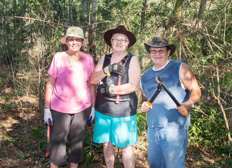 Three of the volunteers from Brook Park Bushcare Group proudly show their enthusiasm at their maintenance activity on Saturday 9 December. Given the small number within this group, their progress was absolutely marvellous over this year. |