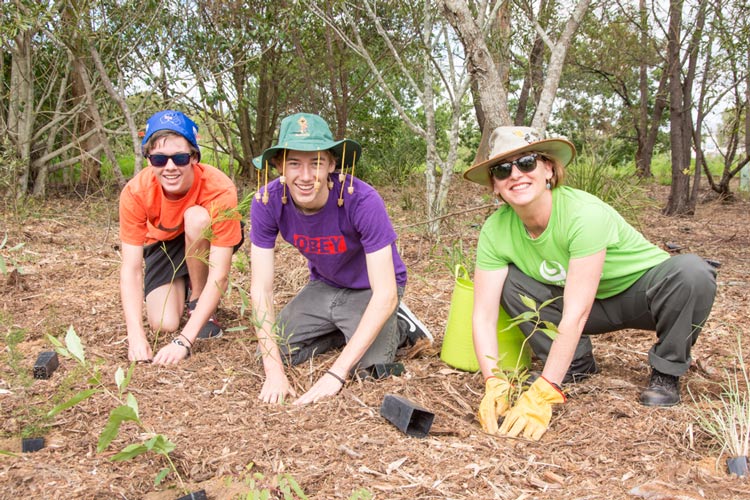 Caroline Black works with her sons, Danny and Andy, at the planting at Teralba Park South |