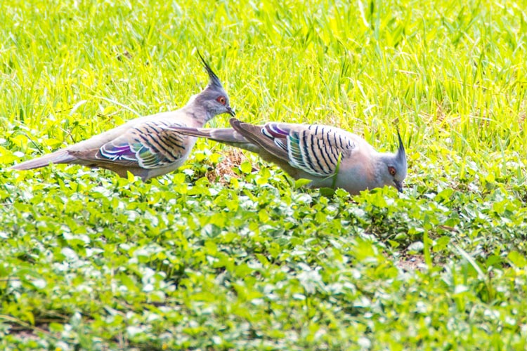 A pair of Crested Pigeons near the Qld Urban Utilities community gathering.