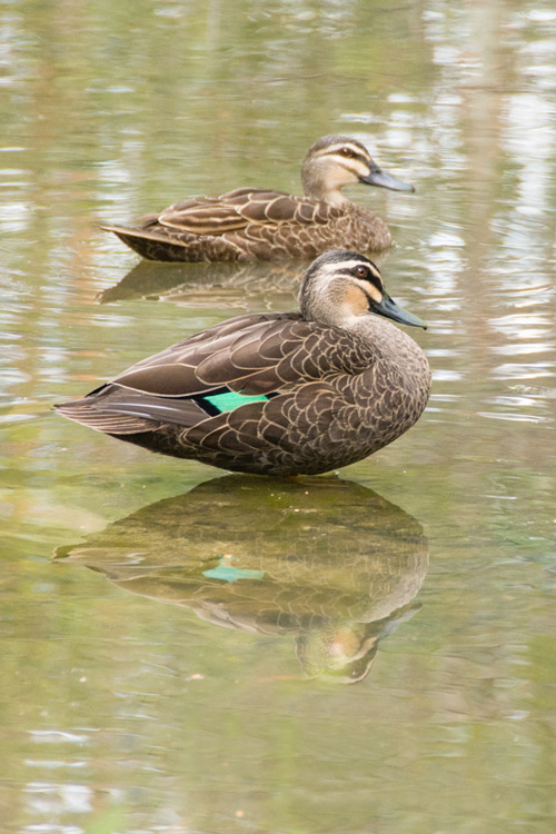 Dad and Mum Pacific Black Duck reflect for a moment in the water at Wahminda Grove. (24 November 2013) |
