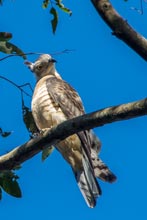 There was great excitement when the Noisy Miners and the Blue-faced Honeyeaters started a ruckus. We soon saw the cause. We were lucky to see not one, but two, Pacific Bazzas. One appeared to be quite immature and treated us to a great view of it eating a large stick insect. The other Bazza flew off over our heads and left the younger one to cope with the harassment of the Miners and Honeyeaters.