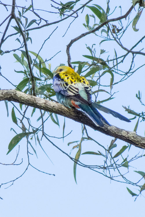 Also on hand to greet us in the flat area near the toilet block was a pair of Bush-stone Curlews. One appeared to be nesting and the other was standing nearby. An Australian King Parrot put in an appearance high on a branch in full sun, but flew off as the photographer was about to take a snap.