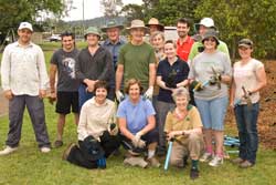 The final mass planting to cover remaining areas requiring additional planting was carried out on Saturday morning, 23 June, 2012. A representative group of the participating organisations (QR, MOTT, KBCB, KBCN) carried out the plantings with some general revegetation work to restore and protect this important corridor for the wildlife. All finished in good time to celebrate the completion of work at Bob Cassimaty Picnic Grounds with late morning tea and a sausage sizzle.