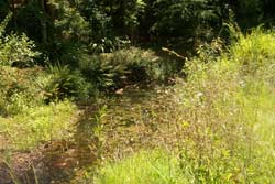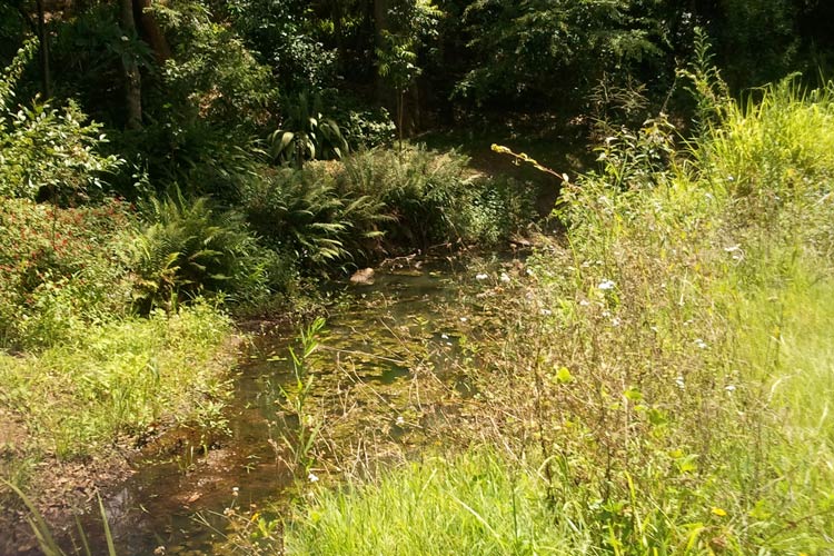 | Kedron Brook can be rather pretty behind Bob Cassimaty Park but not when weeds are so prolific. This Stage 2 plot was revegetated on Saturday 3 March. (Photo: Jacinta Hamilton) |